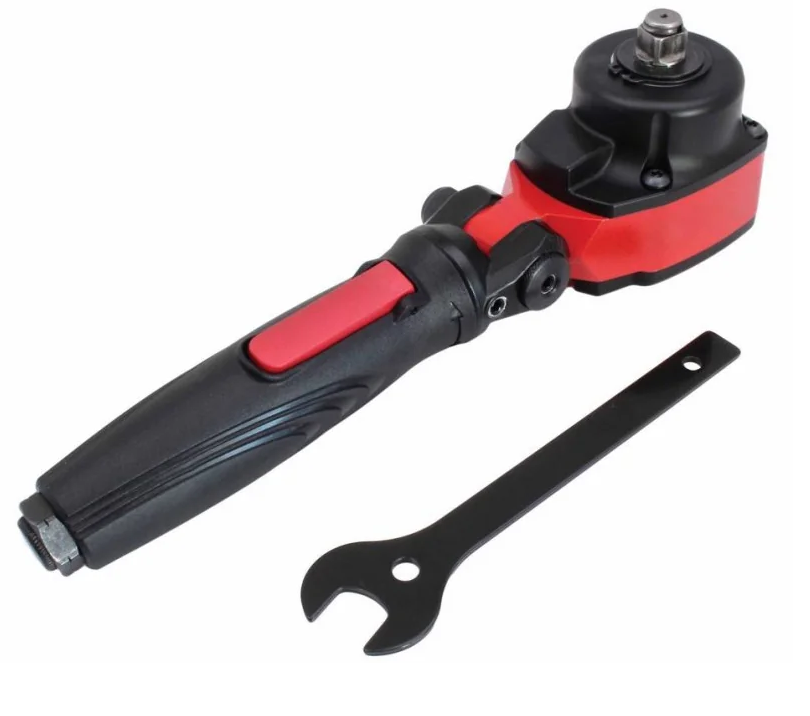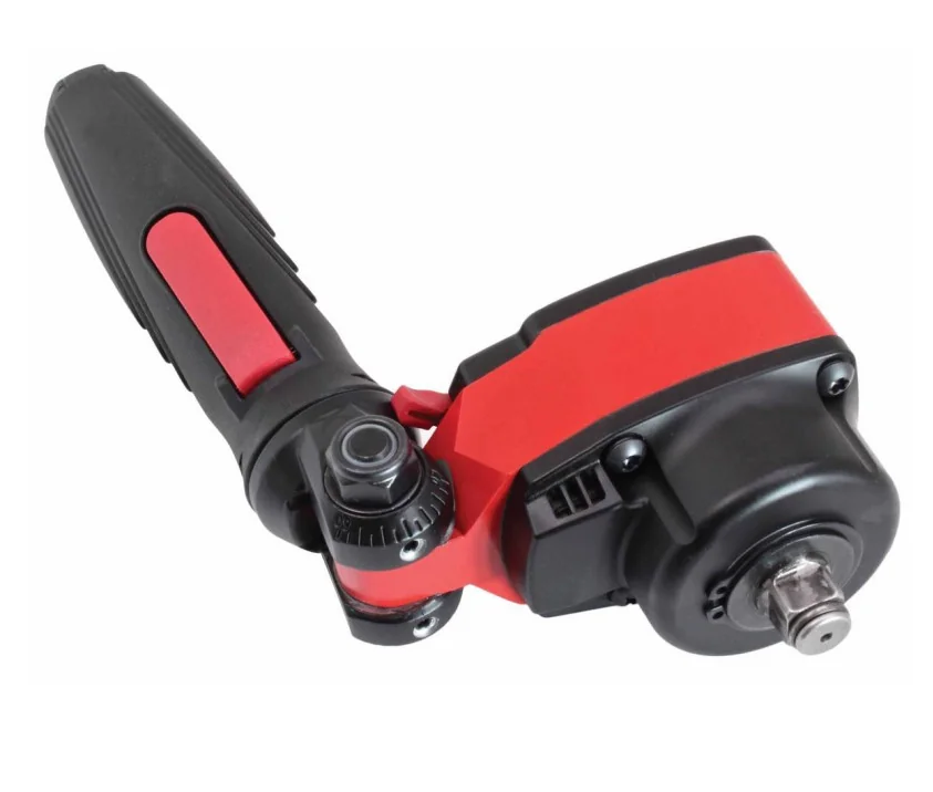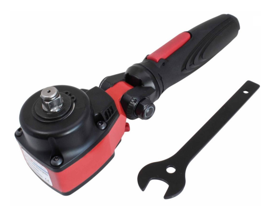 - Narzędzie przypominaja z wyglądu grzechotkę pneumatyczną, ma tylko 70 mm długości głowicy co czyni go najkrótszym w swojej klasie, a dodatkowo regulowana głowica w zakresie 180° i obrotowy korpus o 360° sprawia, że klucz