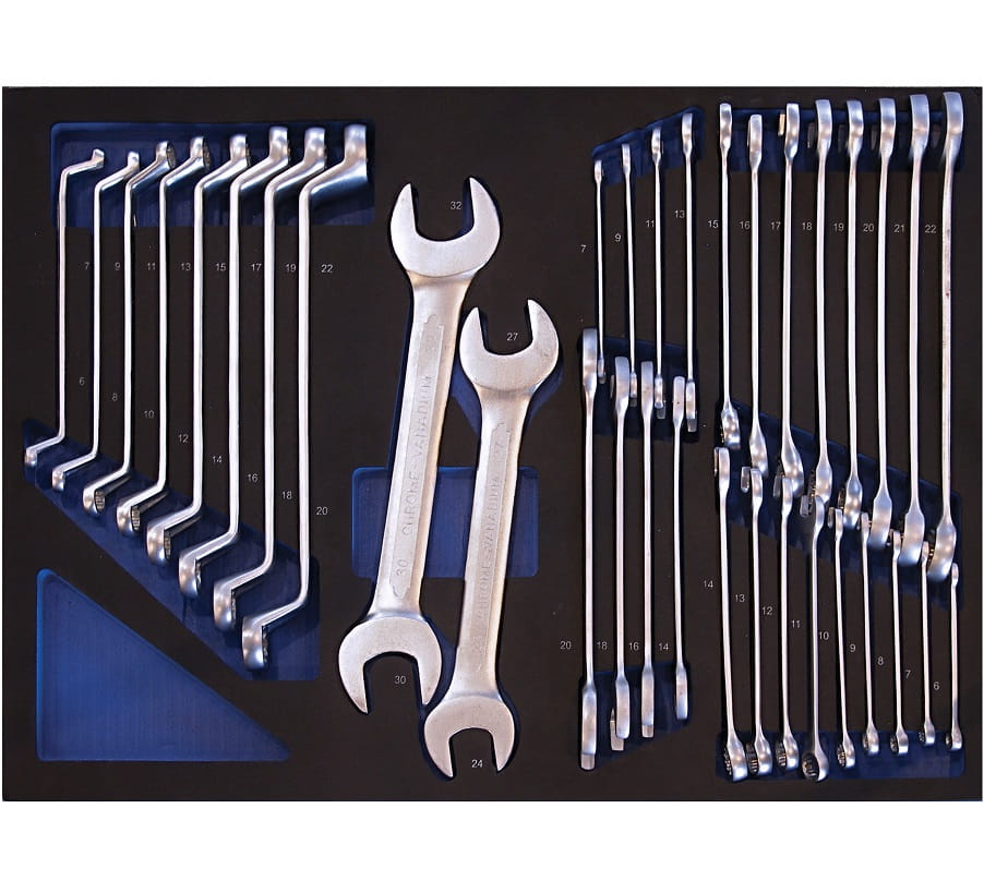 - Zestaw 10 szt. kluczy płaskich dwustronnych: 6x7, 8x9, 10x11, 12x13, 14x15, 16x17, 18x19, 20x22, 24x27, 30x32 mm