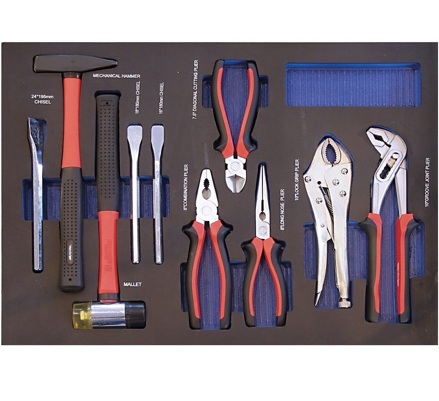 - Całe wyposażenie zostało wykonane ze wzmocnionego stopu stali narzędziowej Cr-V (Chromowo - wanadowej).