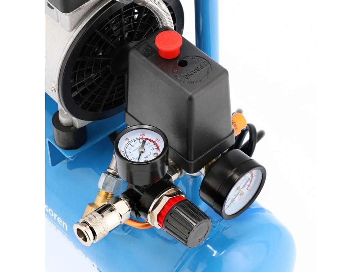 - Kompaktowa sprężarka o mocy 0.6 KM z zasilaniem 230 V jest gotowa do użytku bezpośrednio po wyjęciu z pudełka.