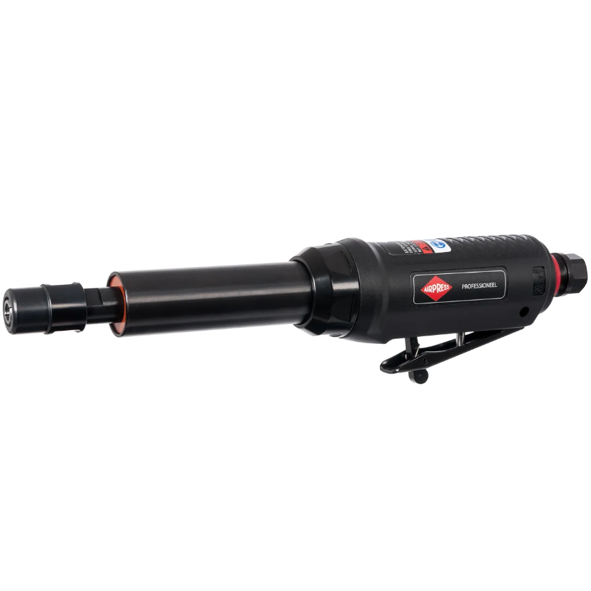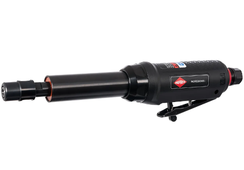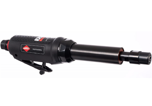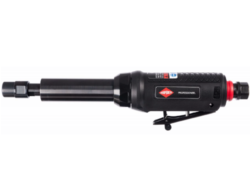 Szlifierka pneumatyczna o wydłużonym trzpieniu, która idealna nadaje się do pracy w trudno dostępnych miejscach, szczególnie otworach przez które należy wprowadzić trzpień narzędziowy.
