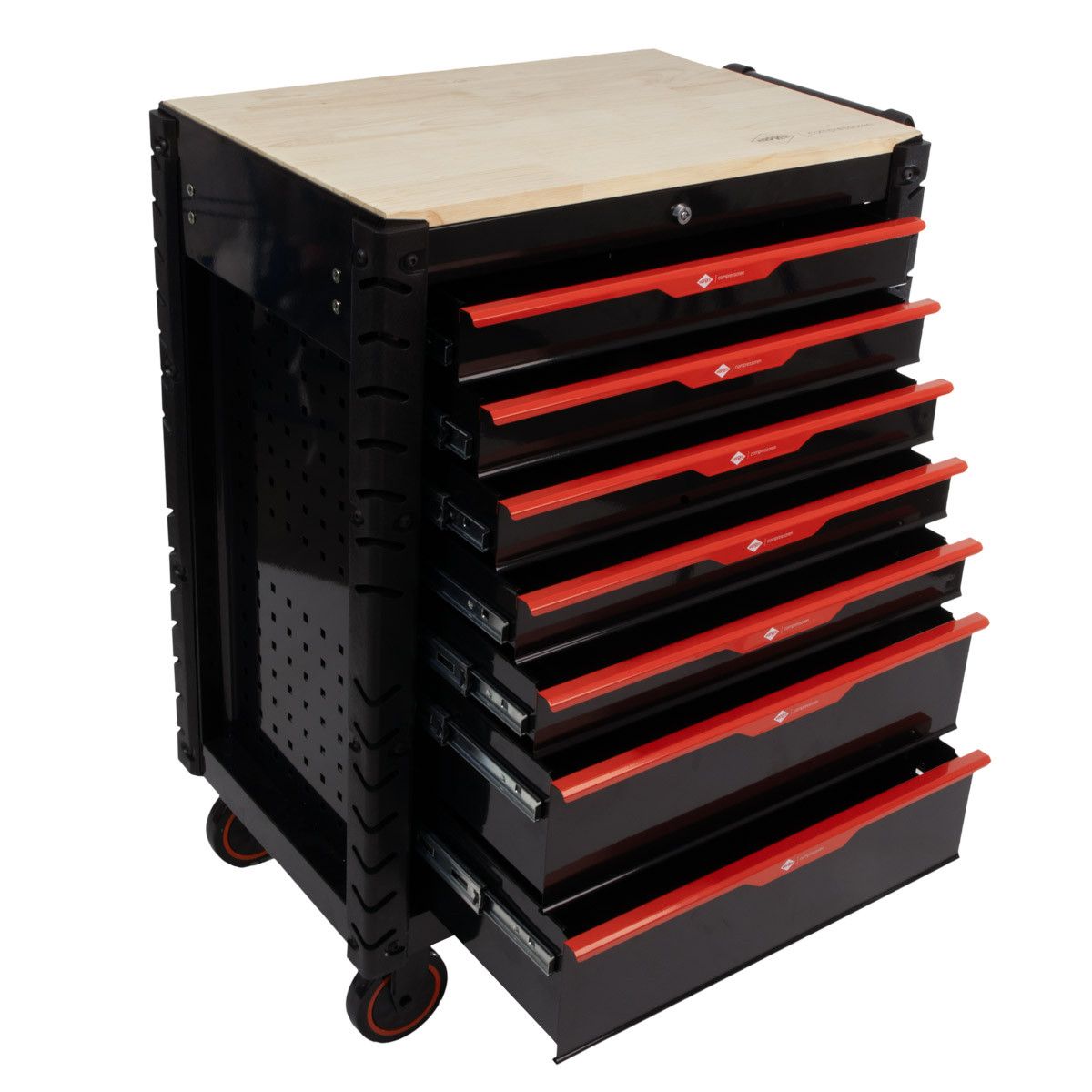 - Wyposażony w 7 szuflad oraz 215 wysokiej jakości narzędzi, zapewnia optymalny porządek i funkcjonalność.