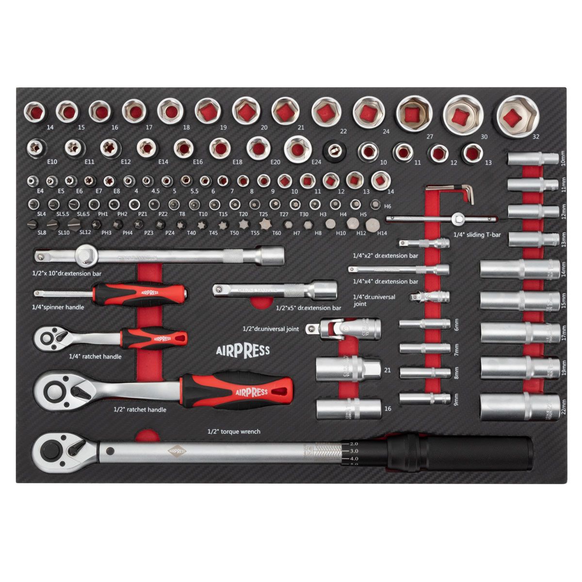 - Airpress 79169 - Profesjonalny wózek narzędziowy z osprzętem 215 elementów - 7 szuflad
