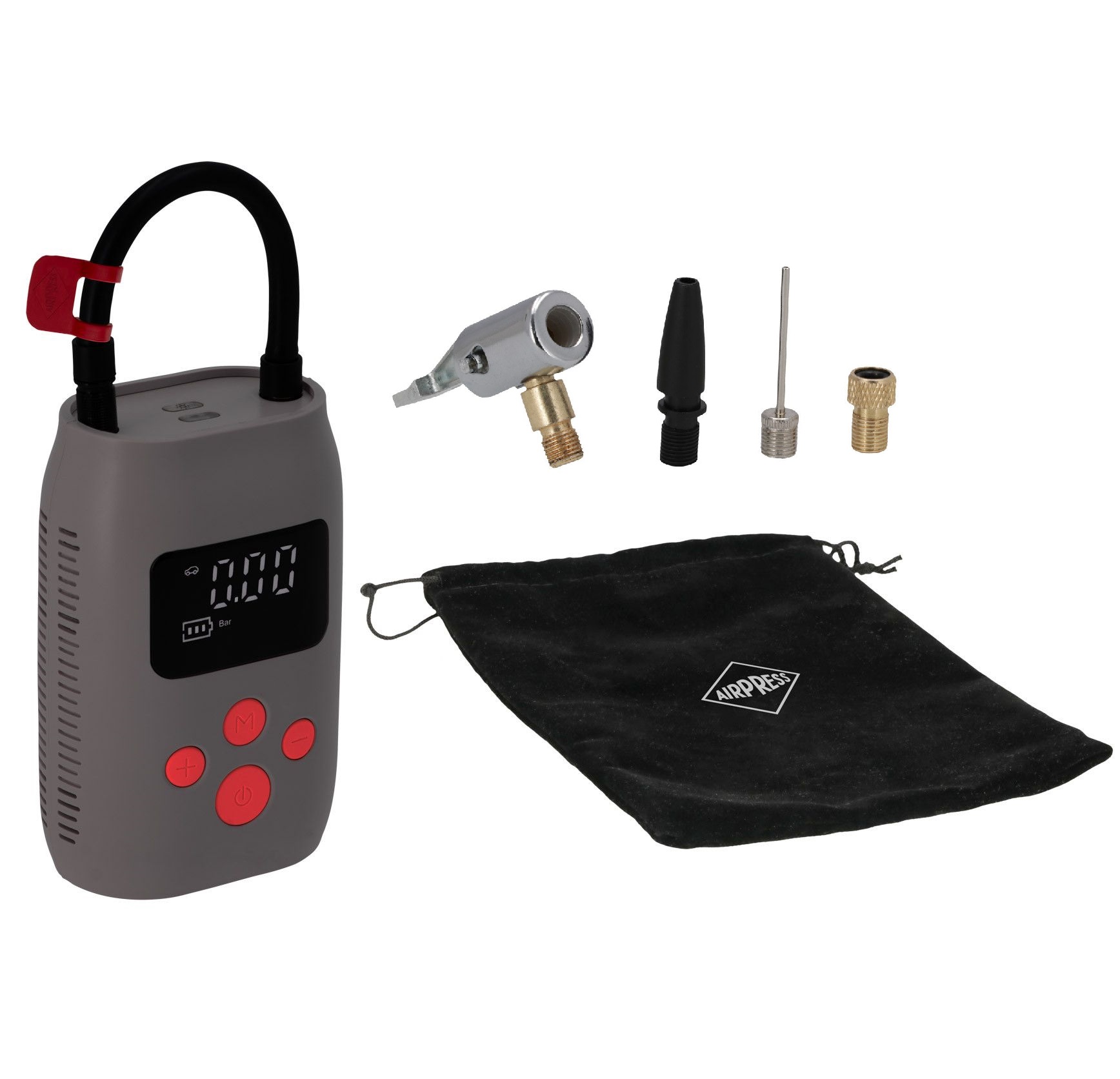 - Ten kompaktowy kompresor został wyposażony w praktyczną lampkę LED, która pełni funkcję latarki.