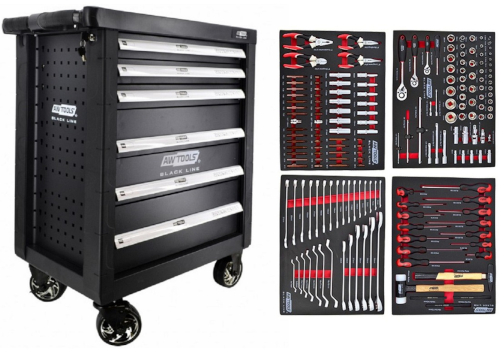 AwTools AW15100 - Szafka warsztatowa - 6 szuflad / z osprzętem - 177 elementów