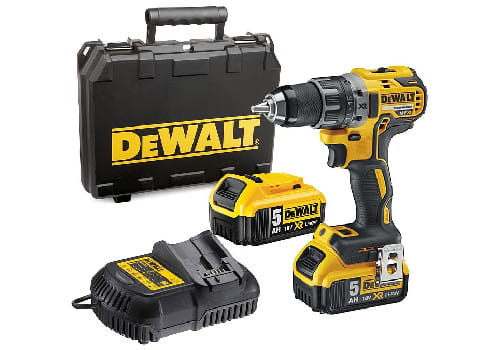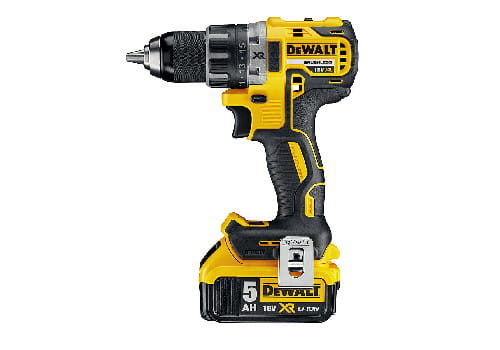 - Kompaktowa wiertarko-wkrętarka XR 18 V wyposażona w NOWE akumulatory 5,0 Ah XR w technologii litowo-jonowej