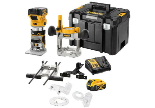 • Kompaktowa frezarka 18V XR 8mm (1/4") z wymiennymi stopami - podstawa stała i dwuręczna