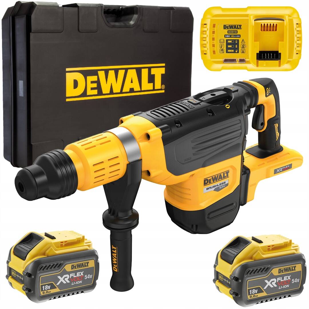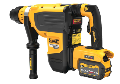 - Młot udarowo-obrotowy SDS-Max 54V XR FLEXVOLT z silnikiem bezszczotkowym ma porównywalną wydajność do narzędzia sieciowego,