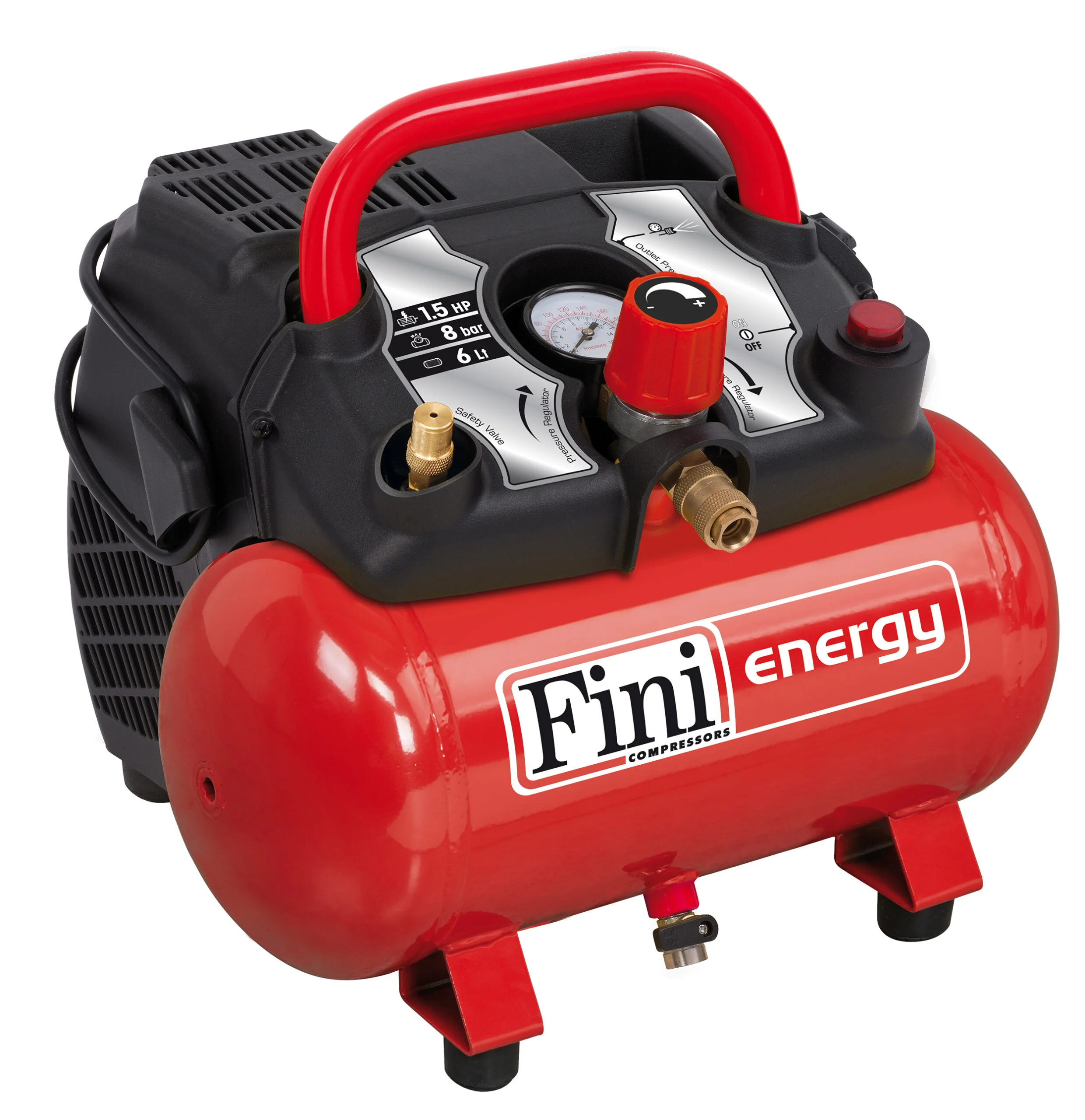Bezolejowy kompresor ENERGY 6 zasilany jednofazowo 230V jest przeznaczony do prac związanych z przedmuchiwaniem i pompowaniem oraz do współpracy z gwoździarką, zszywaczemlub aerografem.