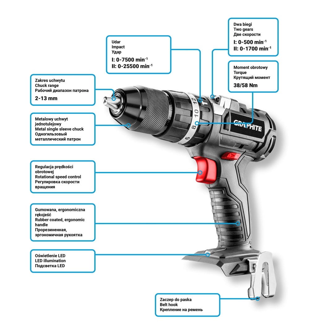 - Graphite 58G020 - Akumulatorowa wiertarko-wkrętarka 18 V