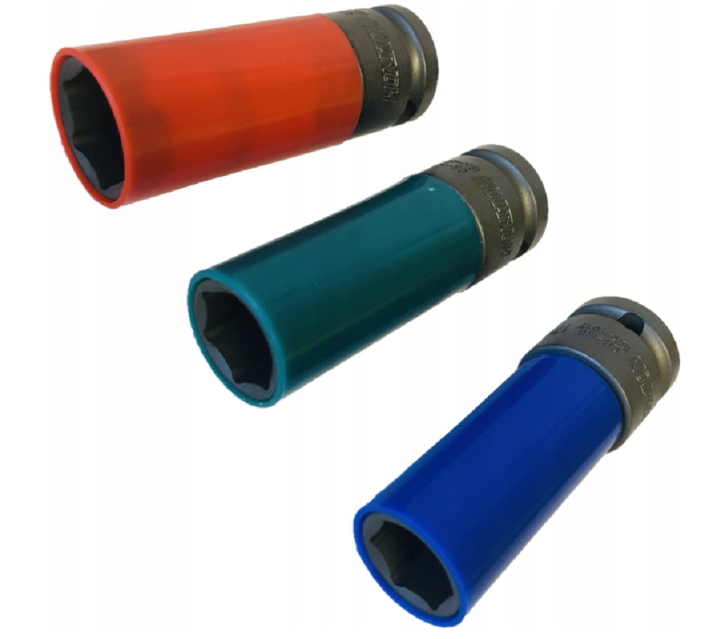 • Nasadki posiadają chromowane wykończenie w 3 kolorach, które ułatwia rozróżnienie rozmiarów.