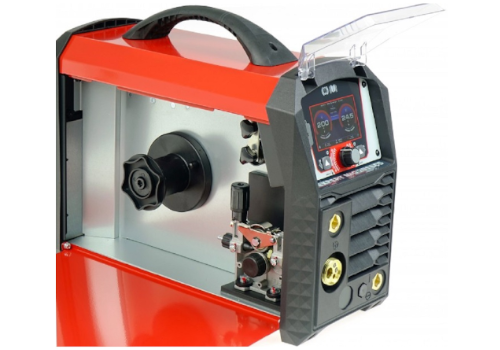 - Szybka regulacja synergiczna parametrów spawania poprzez wyświetlacz LCD, czyni urządzenie bardzo łatwym w użyciu. Wystarczy tylko ustawić podstawowe parametry takie jak rodzaj materiału czy średnica drutu, aby urządzenie dobrało optymalne wartości przed spawaniem.