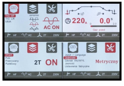 • TIG AC - Spawanie prądem zmiennym. Umożliwia spawanie aluminium i jego stopów oraz mosiądzu