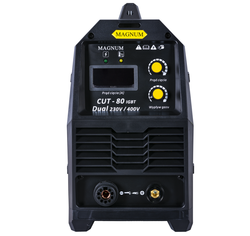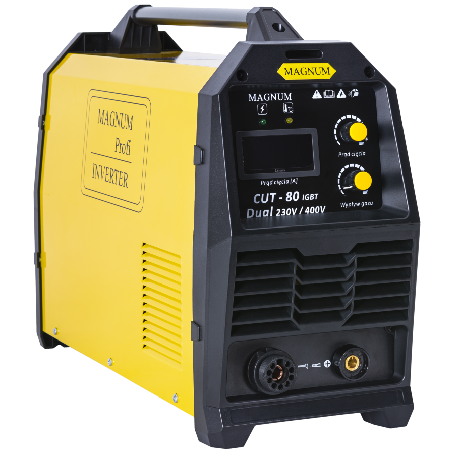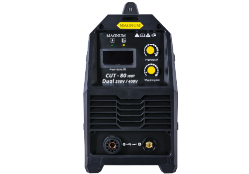 Przecinarka plazmowa marki MAGNUMCUT-80 IGBT DUAL przeznaczone jest do ręcznegocięcia plazmą powietrzną elementów przewodzących prąd elektryczny, wykonanych ze stali węglowych i stopowych, aluminium i jego stopów, mosiądzu, miedzi a także żeliwa.