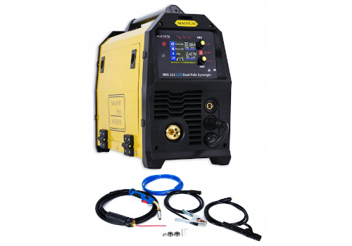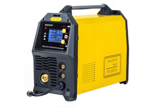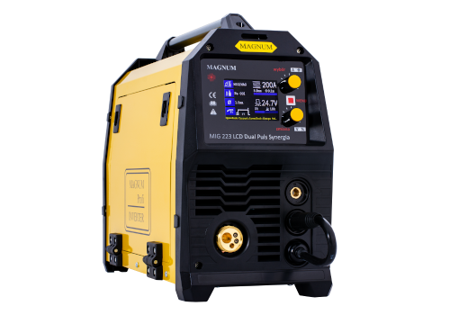 - MIG 223 LCD Dual Puls Synergia marki MAGNUM to zawansowane technologicznie urządzenie spawalnicze, do spawania metodą MIG-MAG, MMA i TIG LIFT. Przeznaczone do ręcznego, elektrycznego spawania stali niskowęglowych, niskostopowych, stali