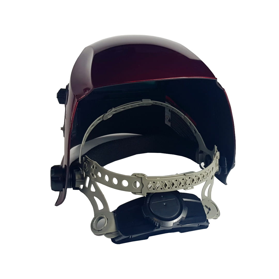 - Ponadto przyłbica jest zrobiona z termo stabilnego, odpornego na zużycie polimeru, w który nie wtapiają się odpryski spawalnicze.