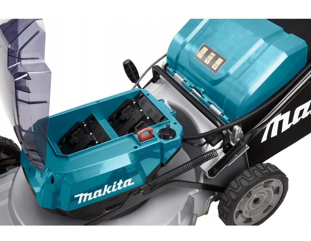 - Akumulatorowa kosiarka do trawy o szerokości koszenia 53,4 cm zasilana 2 akumulatorami LXT 18V