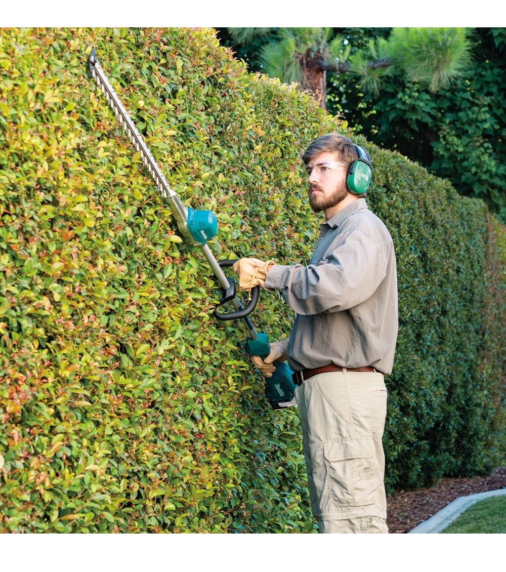 - Akumulatorowe nożyce do żywopłotu na wysięgniku zasilane akumulatorem 18 V Li-ion