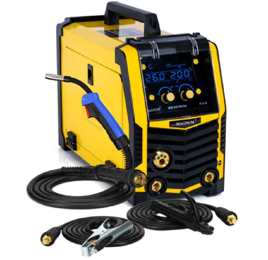 - Spawarka inwerterowa MAGNUM MIG 212 Alu Cu to zaawansowane technologiczne urządzenie spawalnicze pozwalające spawać metodą MIG/MAG, MMA oraz TIG Lift.