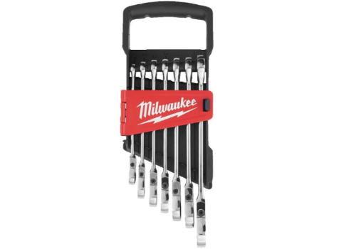1. Milwaukee Max Bite - Zestaw kluczy płasko-oczkowych z grzechotką przegubową - 7 elementów