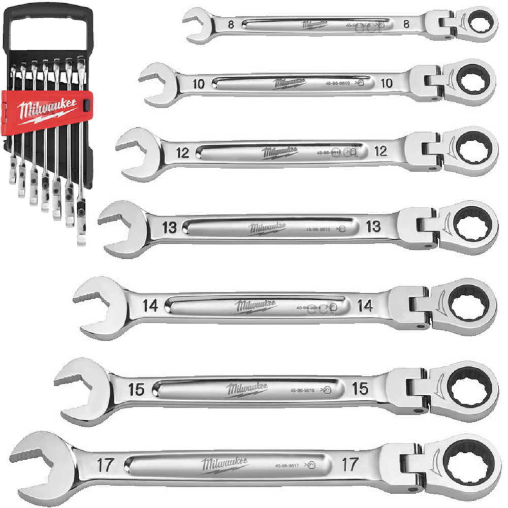 Milwaukee Max Bite - Zestaw kluczy płasko-oczkowych z grzechotką przegubową - 7 elementów
