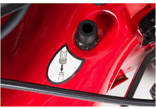 System mycia obudowy – pozwala w prosty oraz szybki sposób umyć wewnętrzną stronę korpusu kosiarki. Wystarczy podłączyć wąż ogrodowy do króćca na obudowie kosiarki.