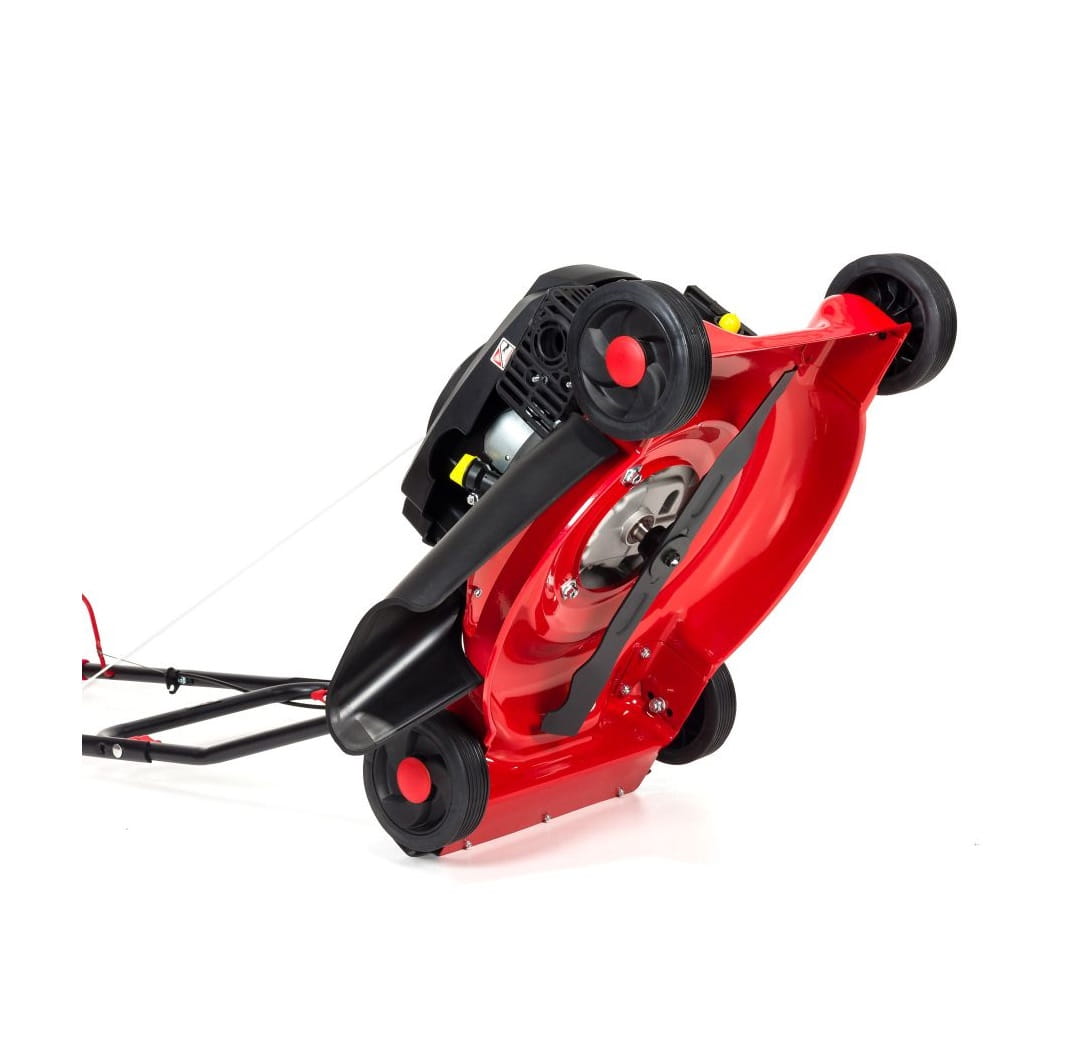 Niewielkie koła oraz lekka i wytrzymała obudowa kosiarki ułatwiają prowadzenie oraz manewrowanie kosiarką.