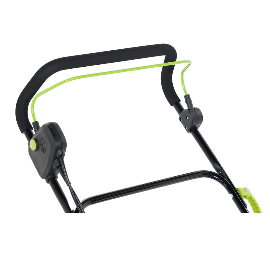 - Dopełnieniem komfortu obsługi maszyny jest rękojeść, którą za pomocą kilkustopniowej regulacji można dopasować do wzrostu każdego użytkownika, przez co praca staje sie jeszcze bardziej wygodna.