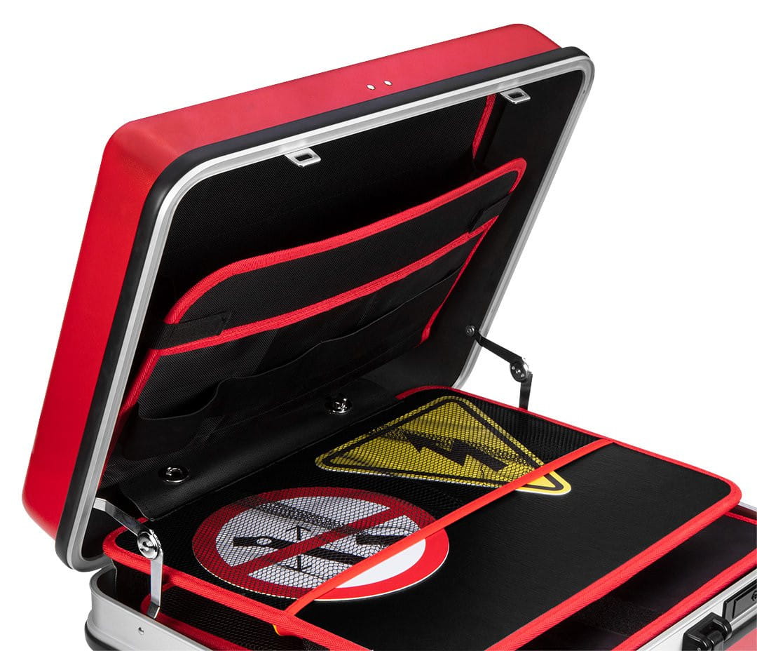 - Każde narzędzie ma swoje miejsce, co znacznie ułatwia pracę przy autach elektrycznych i hybrydowych.