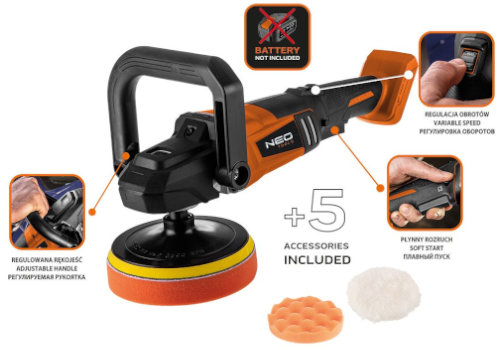 Neo Tools 04-602 - Akumulatorowa polerka z regulacją obrotów 150 mm