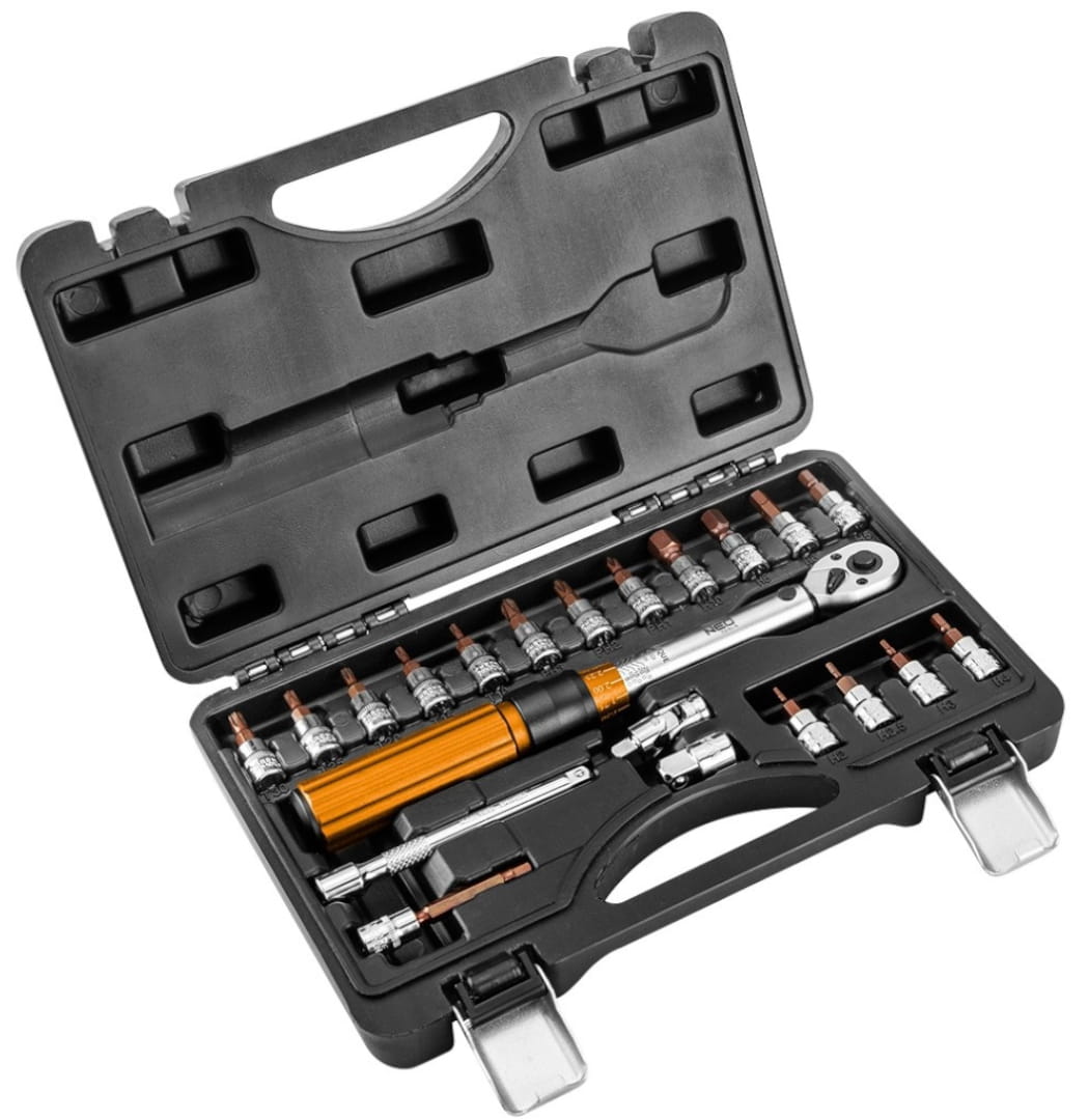 Neo Tools 08-821 - Klucz dynamometryczny dwukierunkowy 1/4'' + nasadki