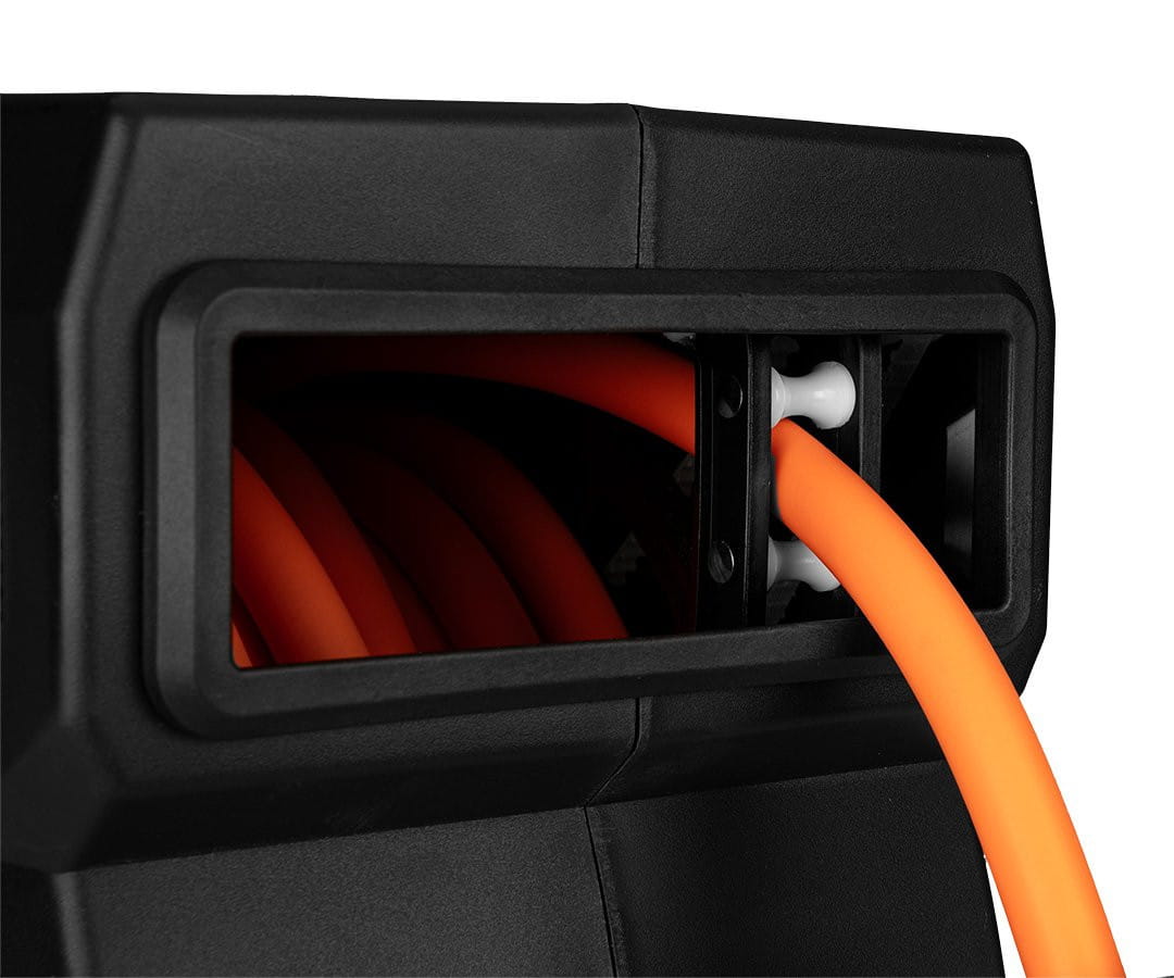 - Funkcja powolnego zwijania oraz zatrzymywania w dowolnym miejscu, a także precyzyjny system nawijania węża na bęben ułatwiają pracę z tym narzędziem.
