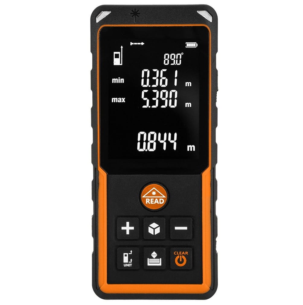 Wyposażony w elektroniczny kątomierz 0-90 stopni pozwala na szybkie oraz łatwe określenie różnych przestrzeni.