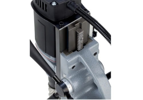 - Urządzenie umożliwia również mocowanie wierteł pełnych krętych w dwóch wersjach: z uchwytem weldon 3/4″ lub przy zastosowaniu uchwytu wiertarskiego wierteł HSS z uchwytem cylindrycznym walcowym. Uchwyt wiertarski dostępny jest w zestawie z wiertarką bezpośrednio po zakupie.