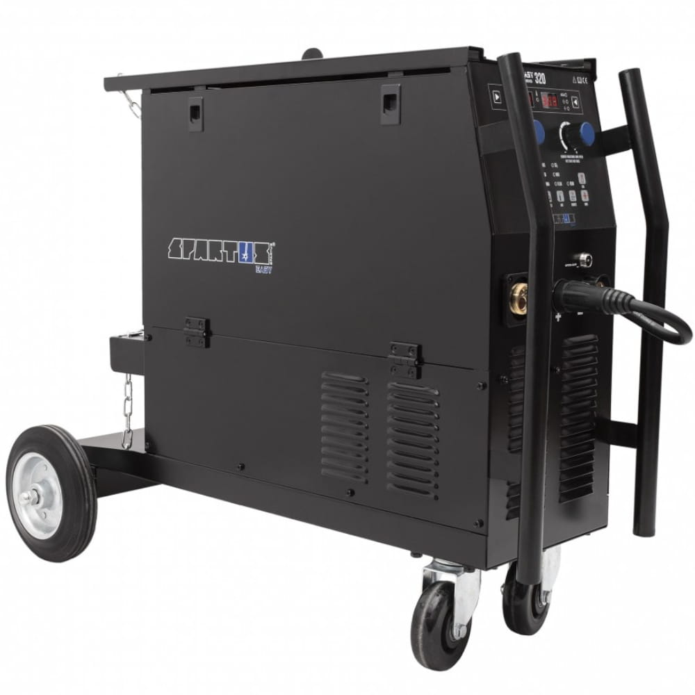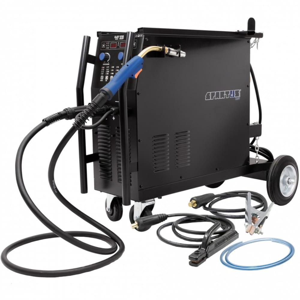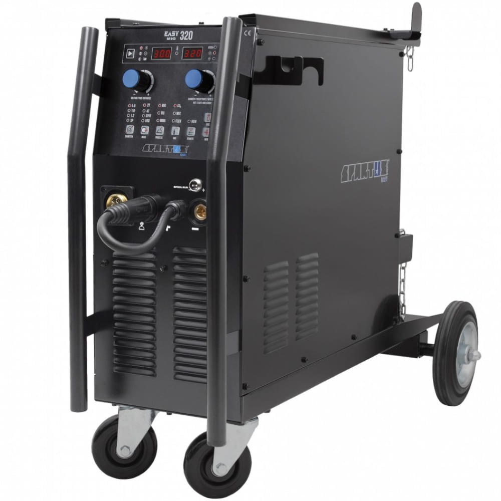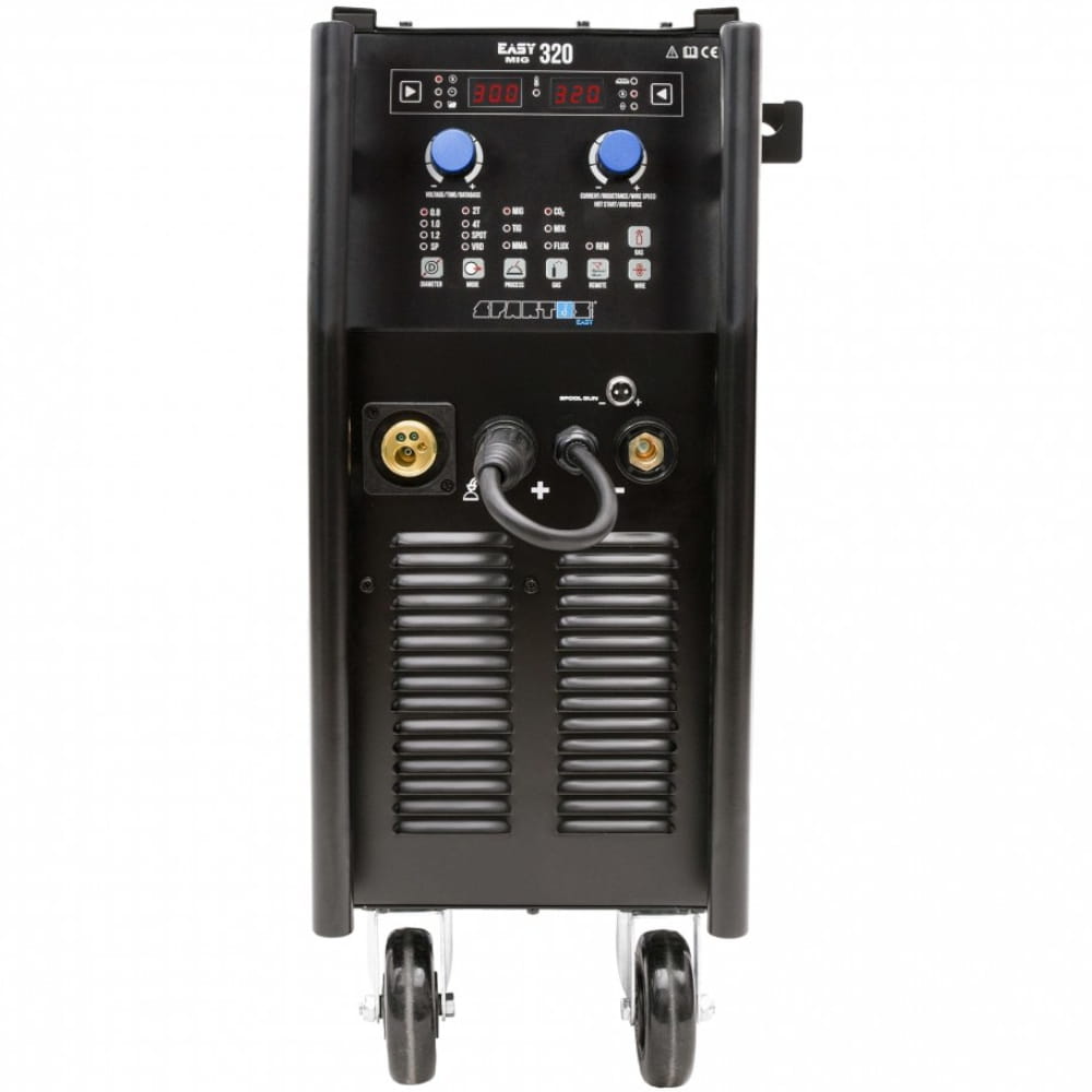 - SPARTUS® EasyMIG 320 to nowoczesne, inwertorowe i profesjonalne urządzenie do spawania metodami MIG/MAG w osłonie gazów obojętnych lub aktywnych oraz do spawania elektrodą otuloną MMA.