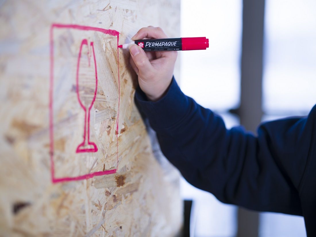 • Marker ma dwie końcówki: cienką 1 mm i szeroką 5,5 mm, i nie wymaga wstrząsania ani pompowania przed użyciem.