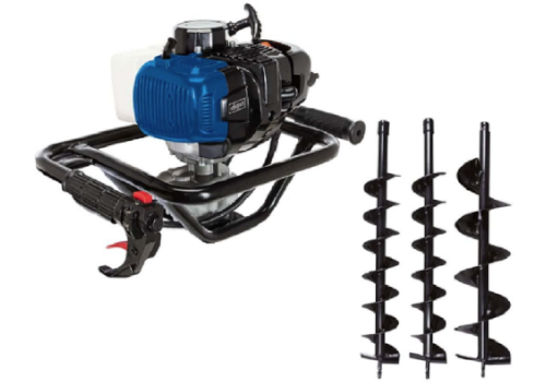 - Maszyna jest dostarczana z 3 wiertłami do gruntu o średnicach 100, 150 i 200 milimetrów.
