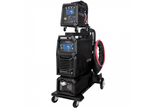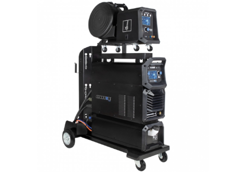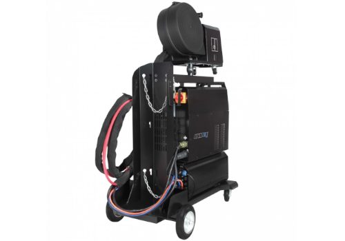 - Całość umieszczona jest na wytrzymałym wózku spawalniczym z miejscem na butlę z gazem technicznym, co znacząco zwiększa mobilność i funkcjonalność zestawu, umożliwiając wygodne przemieszczanie się po miejscu pracy.