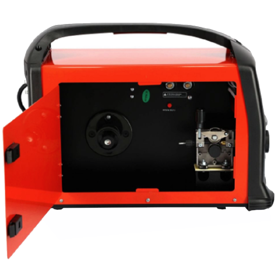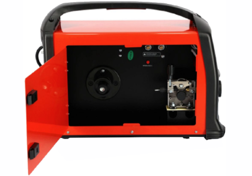 - Wewnątrz spawarki umieszczony jest podajnik drutu, który umożliwia zakładanie szpuli do 5kg/200mm.