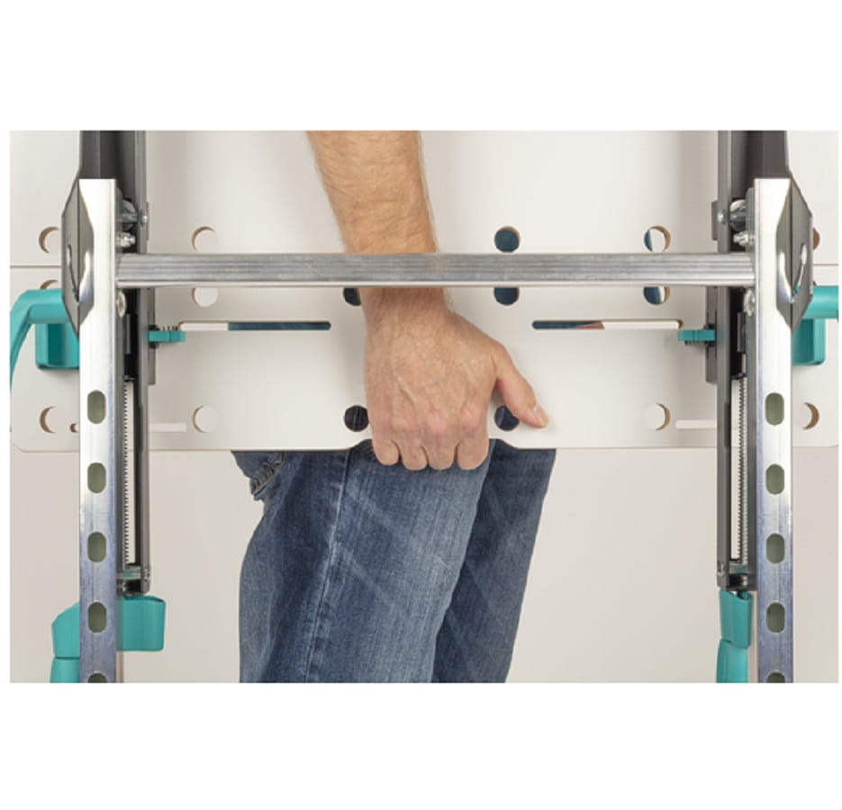 - elementy zatrzaskowe i zabezpieczenie przed nadmiernym rozsunięciem zapewniają bezpieczeństwo podczas użytkowania jako stół maszynowy