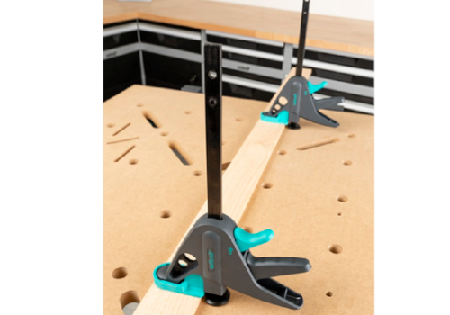 • ścisk do stołów PRO 65-150-W, do wszystkich otworów 20 mm, np. w stołach firmy wolfcraft serii MASTER, to wiele różnych możliwości mocowania na blacie