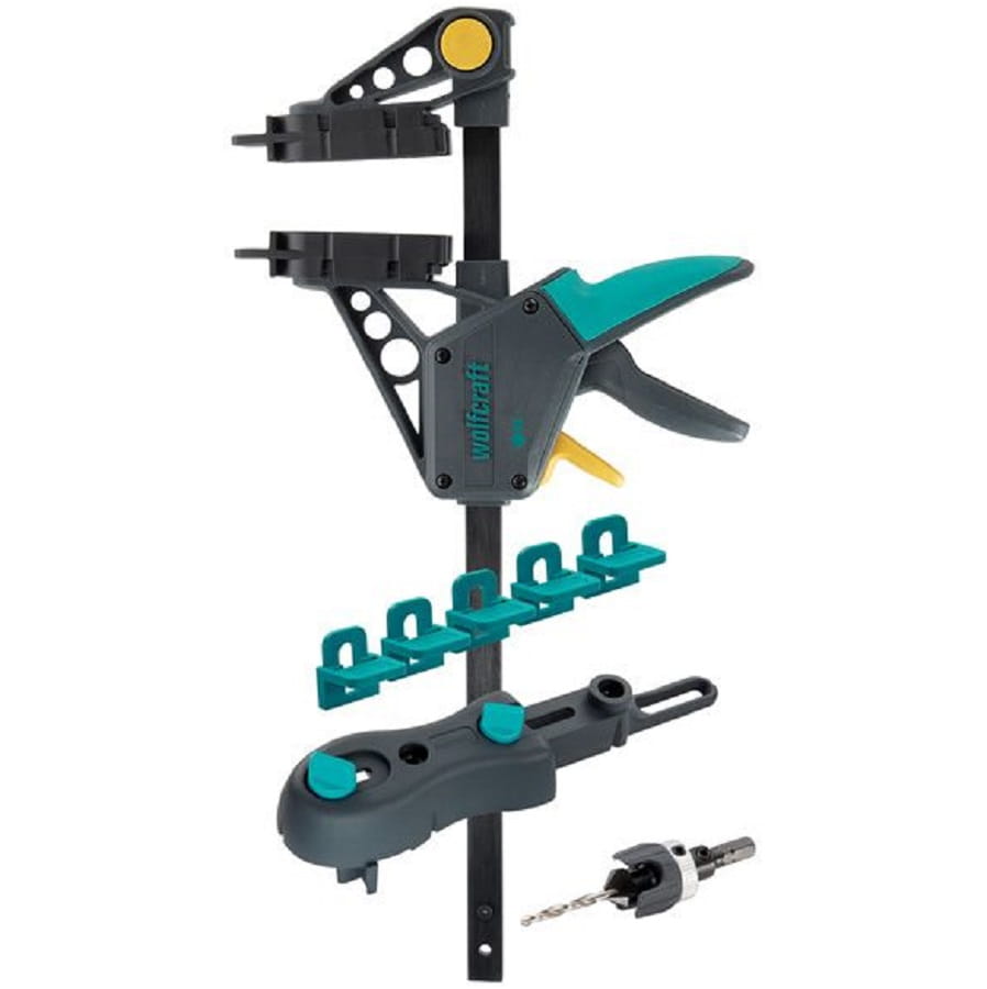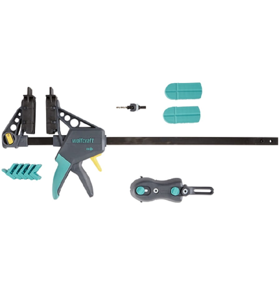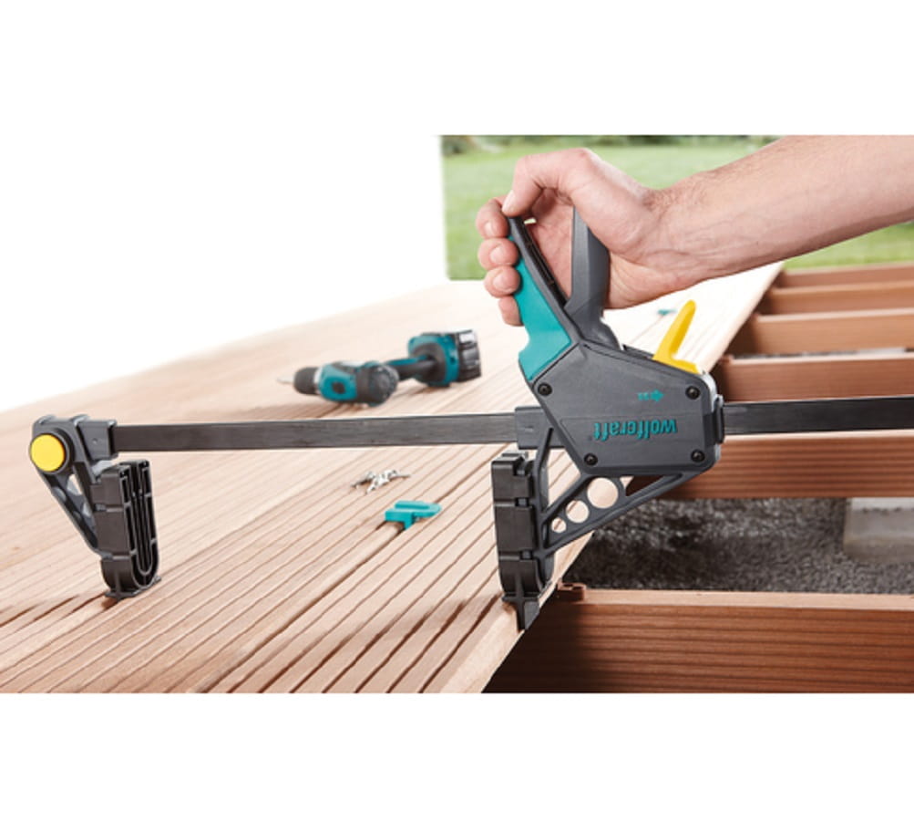 - 2 dodatkowe zielone szczęki mocujące umożliwiają wykorzystanie ścisku montażowego do budowy tarasów także w funkcji ścisku jednoręcznego.