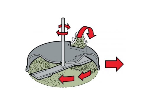 - wyrzut tylny - skoszona trawa wyrzucana jest pod nogi, koszenie bez użycia kosza