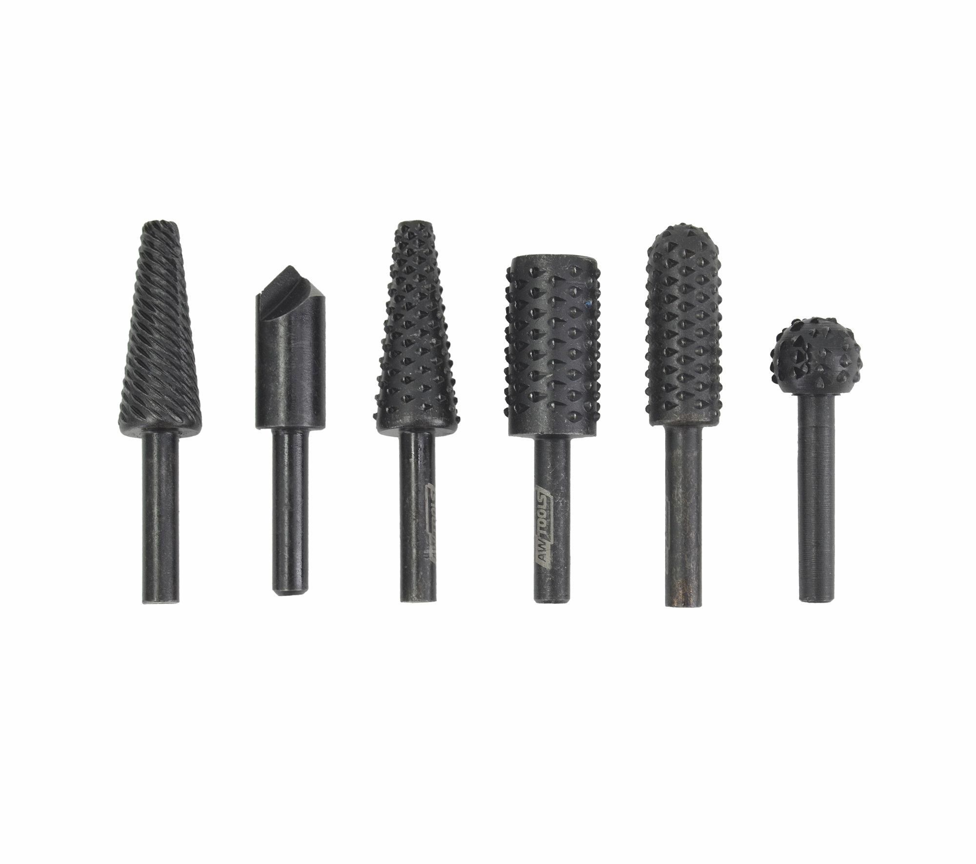 Wykonane z wysokiej jakości utwardzanej stali szybkotnącej HSS, wykończenie oksydowane. Zestaw zawiera 4 wiertła do drewna i 2 do metalu. Przeznaczone do obróbki miękkich stali, aluminium, miedzi, brązu, mosiądzu oraz drewna. Stosowanie podczas prac takich jak: szlifowanie, kształtowanie, obróbka krawędzi, profilowanie krawędzi. Dane techniczne: Ilość: 6 szt. Chwyt: cylindryczny Średnica trzpienia: 6mm Obroty: 2,000 obr./m in. Waga: 225 g Zestaw zawiera: 1x frez kulkowy 1x frez owalne 1x mały frez stożkowy 1x duży frez stożkowy 1x frez cylindryczny 1x frez pogłębiający
